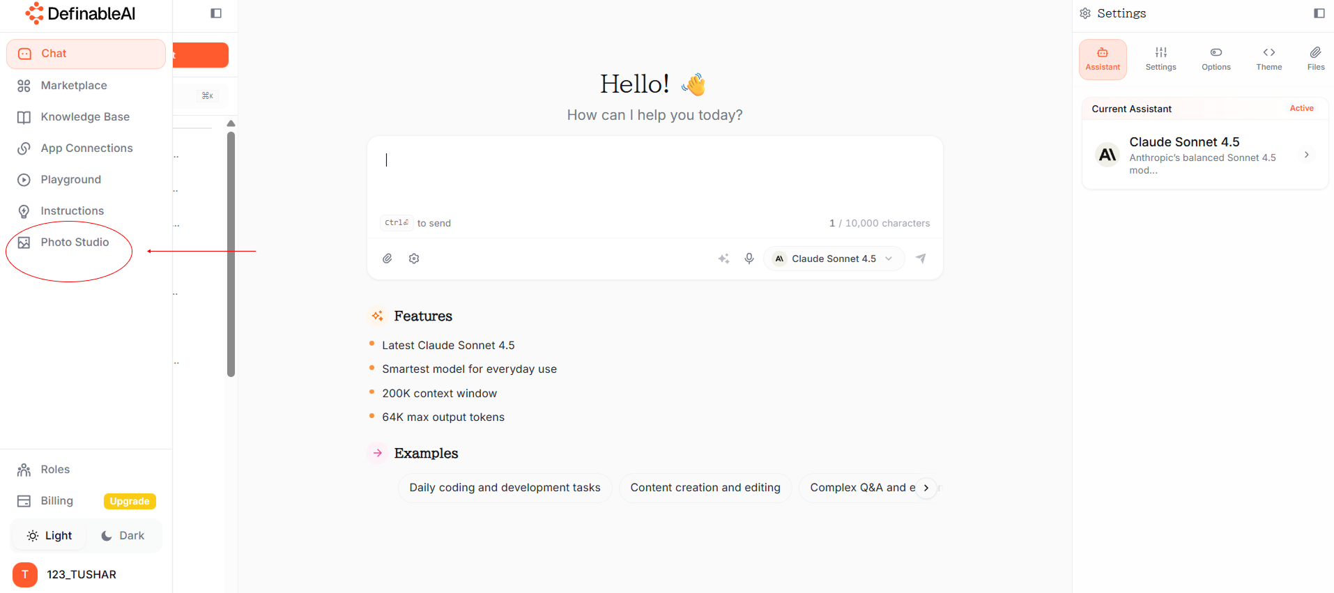 Log into Definable AI and navigate to Photo Studio. This is where text becomes visual reality.