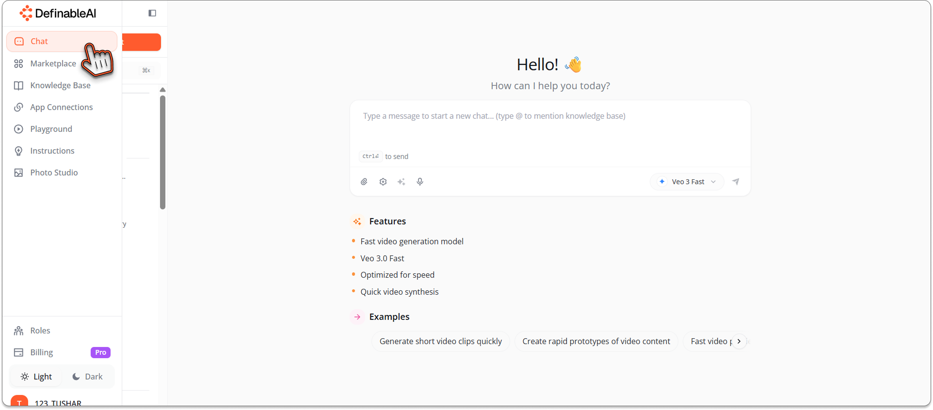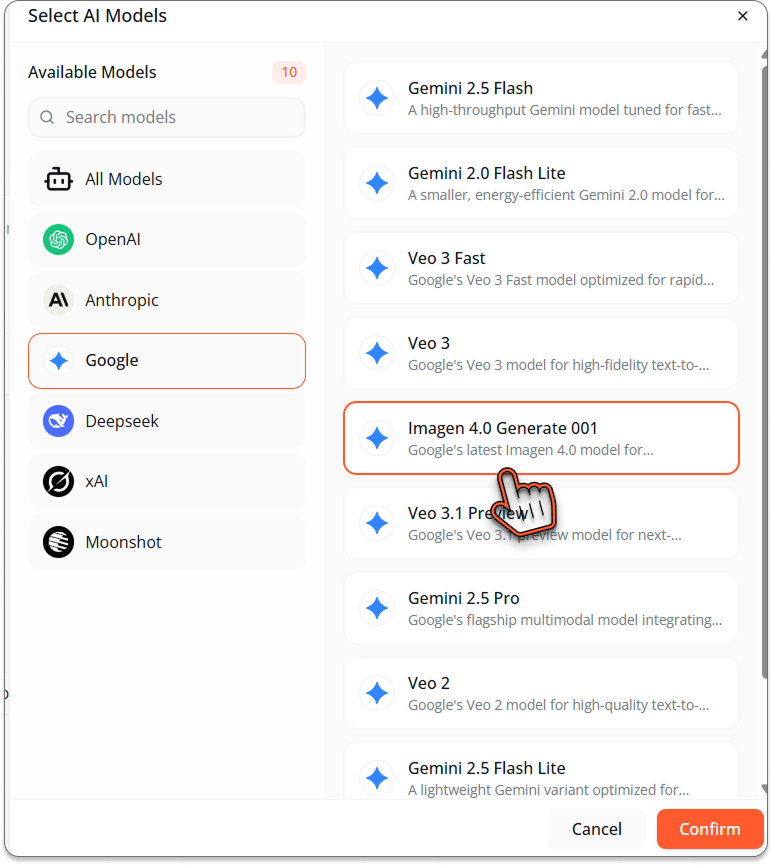 This opens Definable AI's multi-model chat interface where you have access to dozens of AI models, including Google's latest Imagen 4.