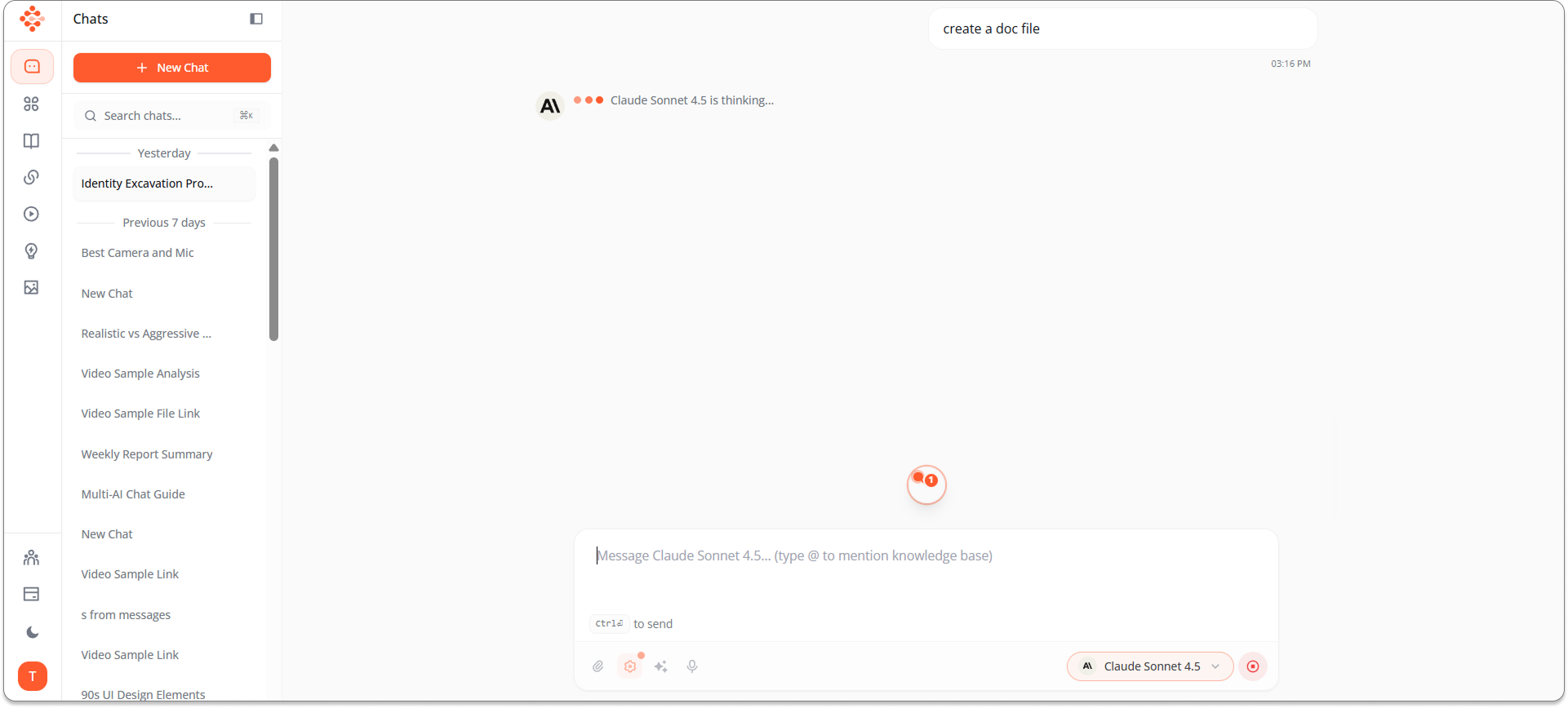 At the bottom of the chat interface, select your AI model.