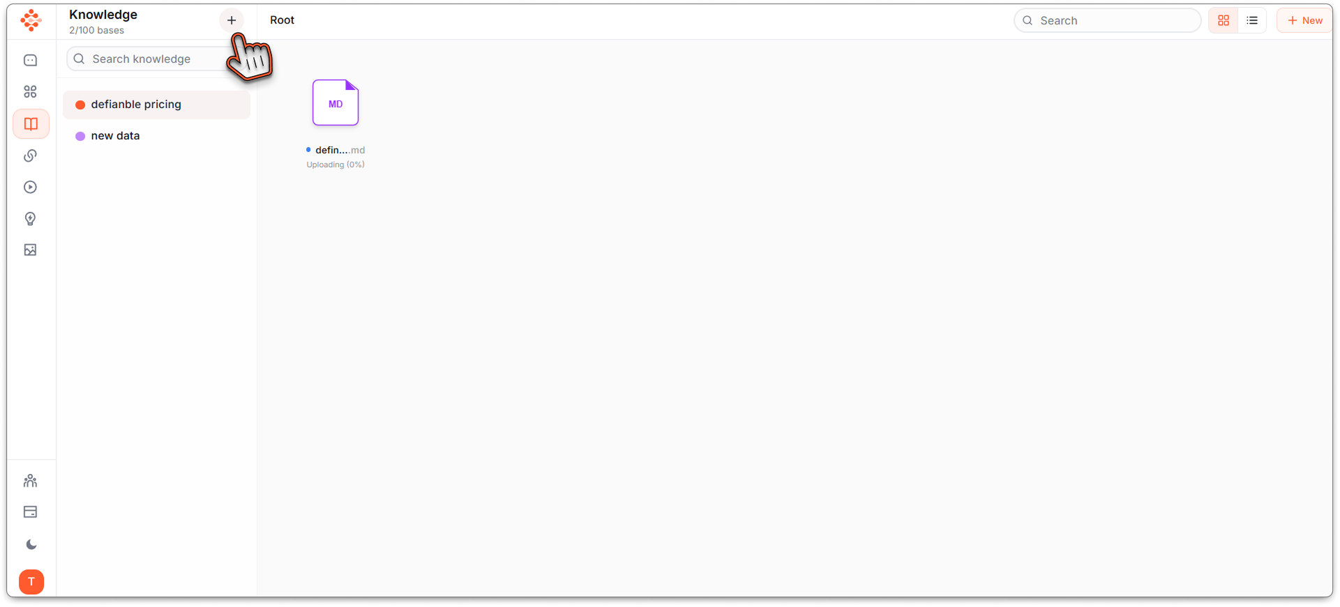 Step 1: Upload your complete study materials to Definable AI's Knowledge Base: