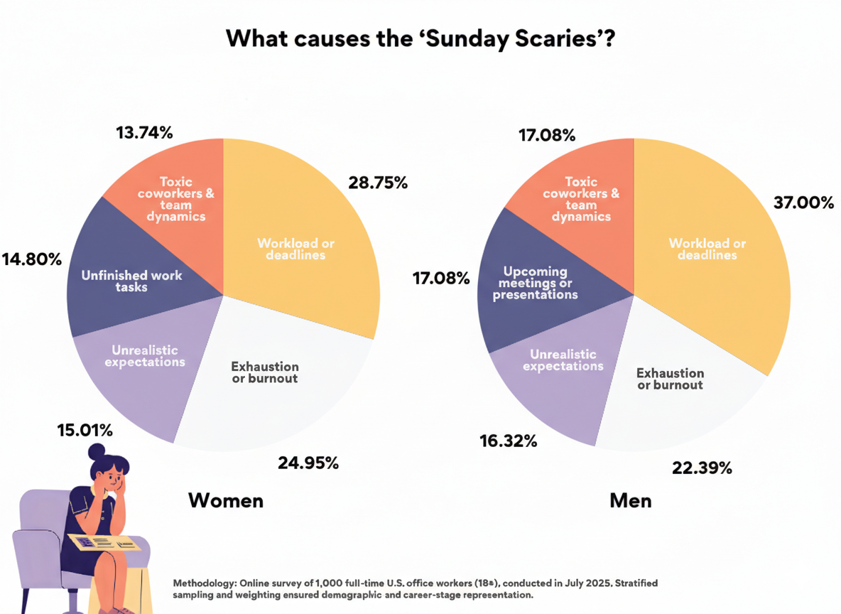 Who is impacted the most by ‘Sunday Scaries’? We surveyed 1,000 American professionals to uncover who is affected, highlighting key trends and patterns across different age groups and genders.